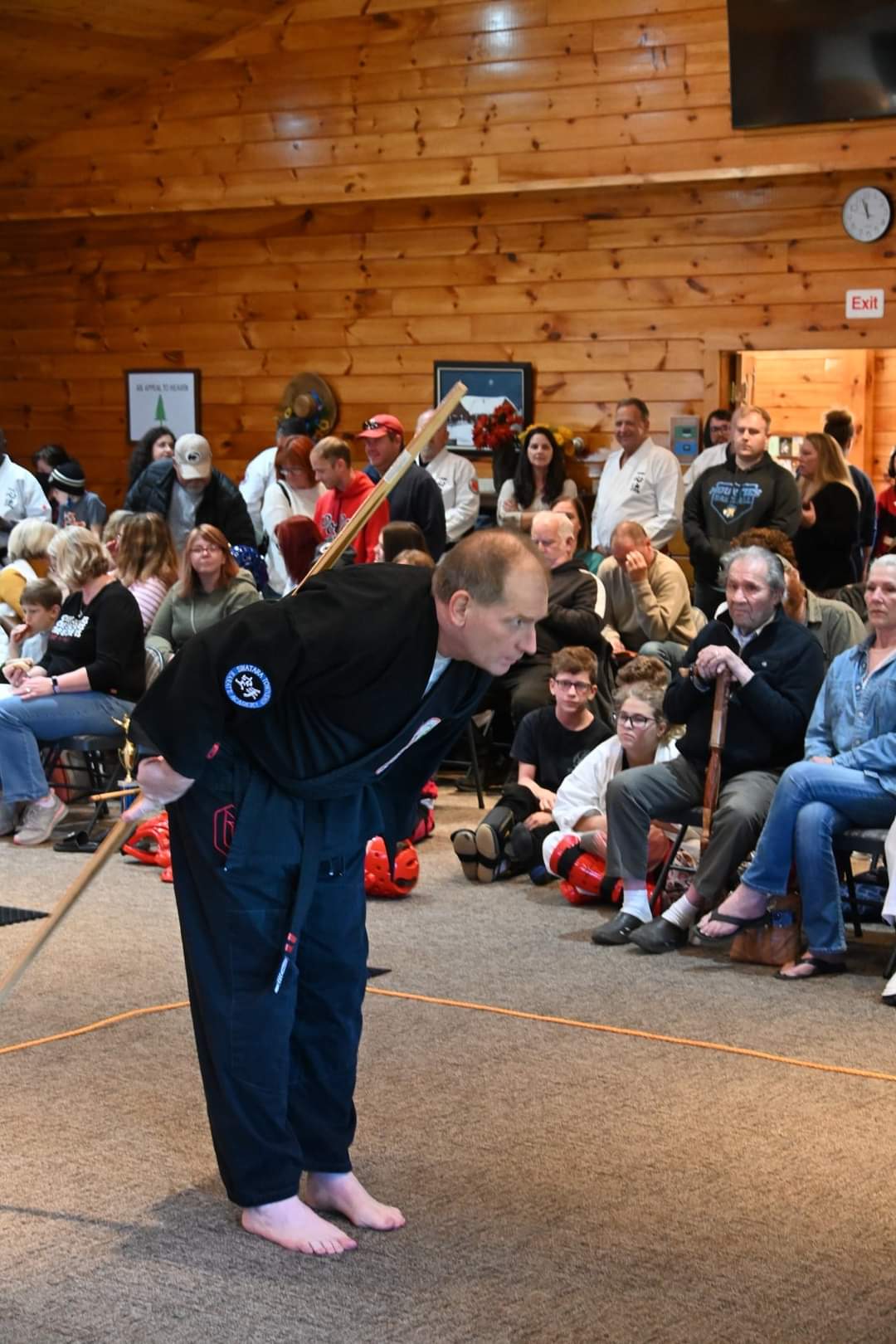 Focus is on belt level “forms” or katas. These are either open hand or with weapons (bo, sai, bo-bo kumite, bo-sai kumite, tuifa, and kamas).