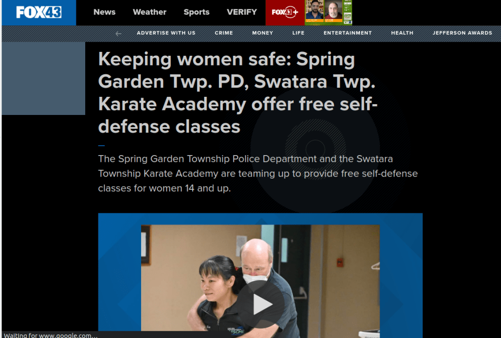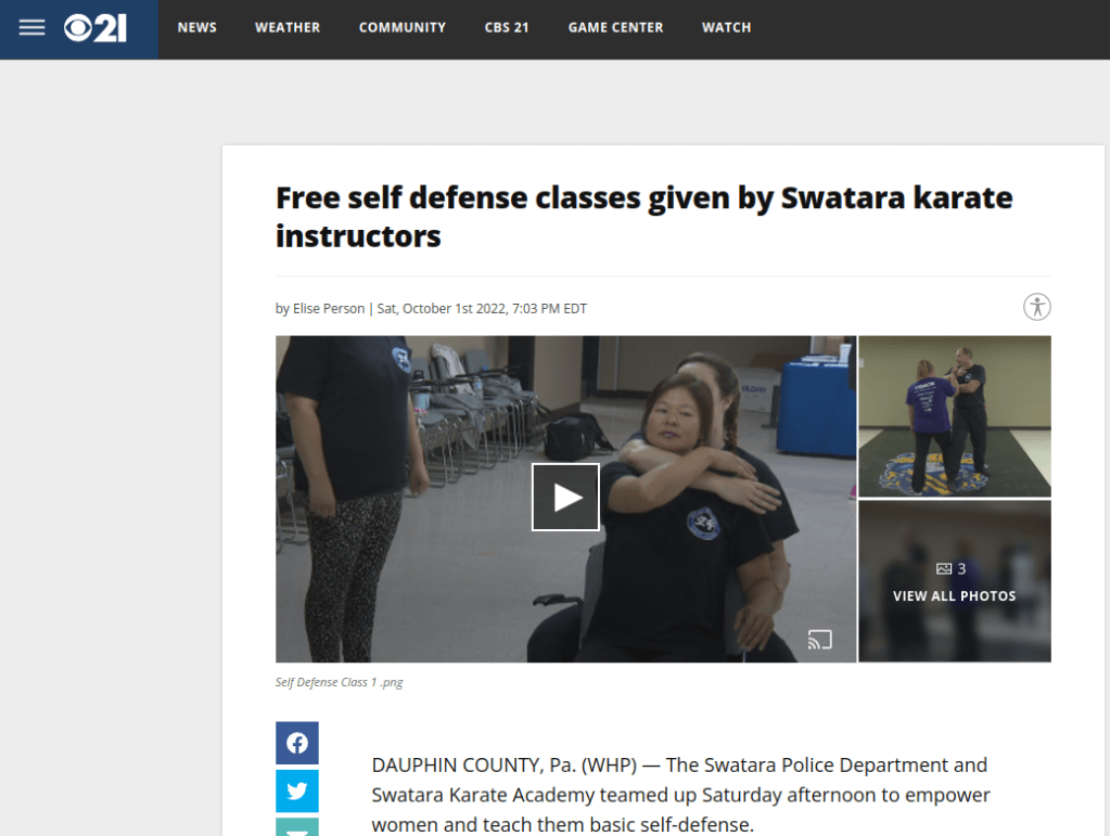 Channel 21 10/1/22: https://local21news.com/news/local/swatara-karate-academy-and-police-host-free-self-defense-classes-for-women?video=99c36d6ed99d4367837de16dd868afa1